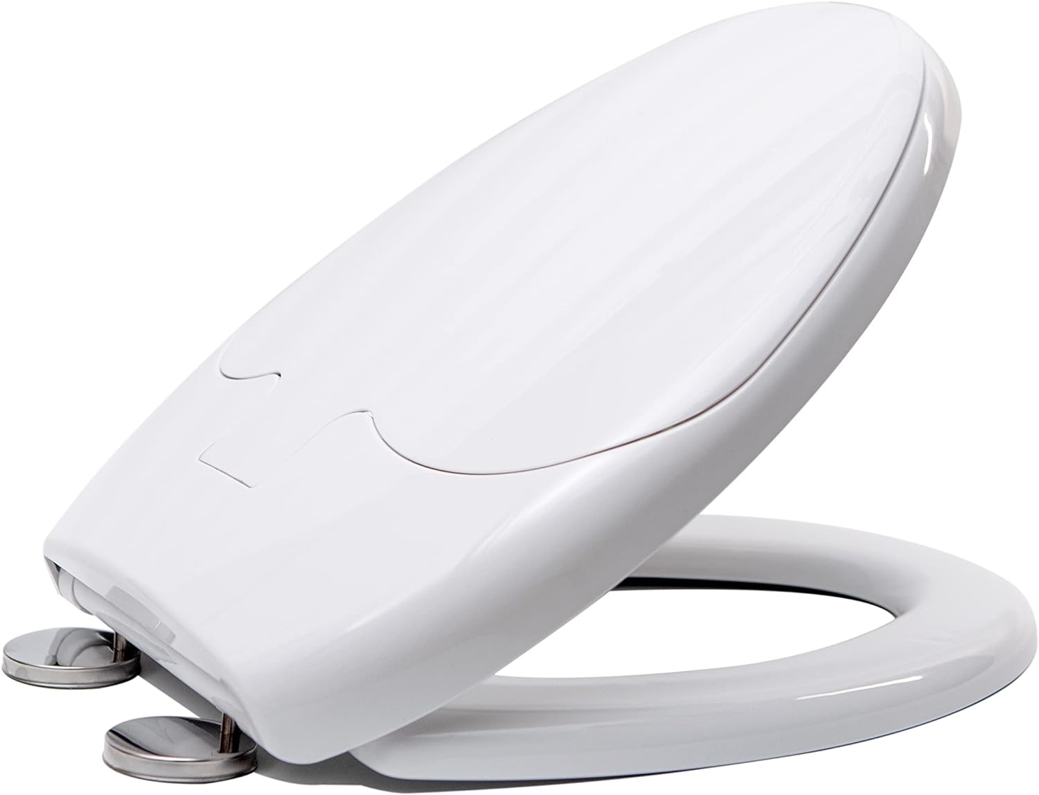 - NO SLAMMING: Both (adult and child) seats closes slowly and quietly with a tap to eliminate pinched fingers.