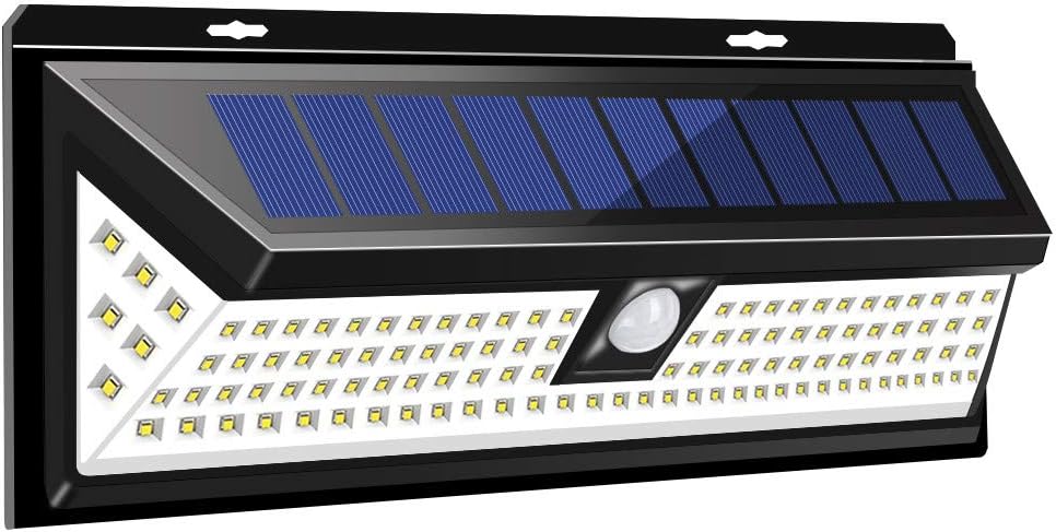 - Super bright efficiency LED chip’s unique wide-angle design provides greater luminosity. The corner LEDs emit enough extra light to make the entire solar light very efficient