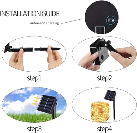 - Auto on at night / Auto off at sunrise: Built-in rechargeable NI-MH battery,Recharge at daytime and light up automatically at night or dark environment;Fully charged 6-8 hours and have more than 8 hours working time.