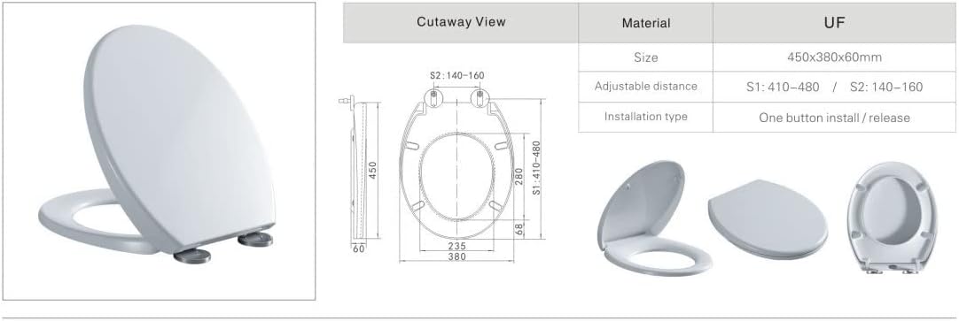 • FITS ALL TOILETS: This seat fits all round and oval shape toilet bowls (430mm to 470mm)