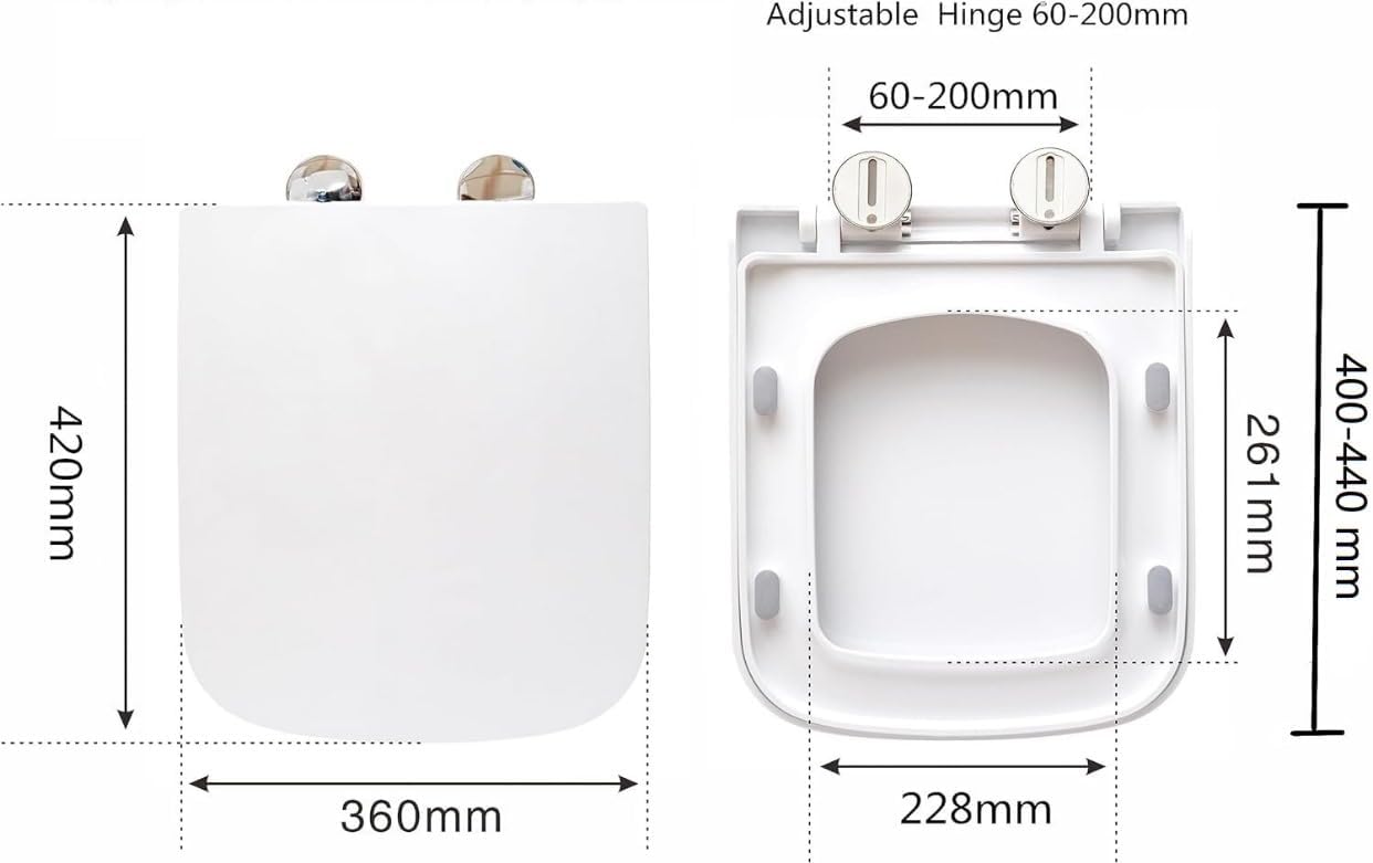 - FITS ALL TOILETS: This seat fits all square shape toilet bowls (355 mm to 440 mm).